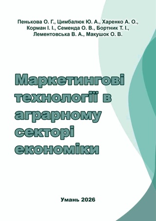 Кафедра маркетингу пишається черговим науковим здобутком. У 2026 році опублікована монографія «Маркетингові технології в аграрному секторі економіки», підготовлена авторським колективом у складі членів кафедри: Оксани ПЕНЬКОВОЇ, Юрія ЦИМБАЛЮКА, Андрія ХАРЕНКА, Ірини КОРМАН, Ольги СЕМЕНДИ, Тетяни БОРТНИК, Валентини ЛЕМЕНТОВСЬКОЇ та Ольги Макушок.