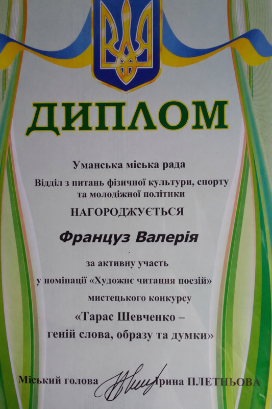 За ініціативою Уманської міської ради відбувся мистецький конкурс «Тарас Шевченко – геній слова, образу та думки», урочистий захід, який покликаний вшанувати невмирущу спадщину великого українського поета і художника. Цього разу талановита молодь міста зібралася разом, щоб через поетичне слово, музику та образотворче мистецтво висловити свою повагу і любов до постаті Тараса Шевченка - символу духовної сили українського народу.