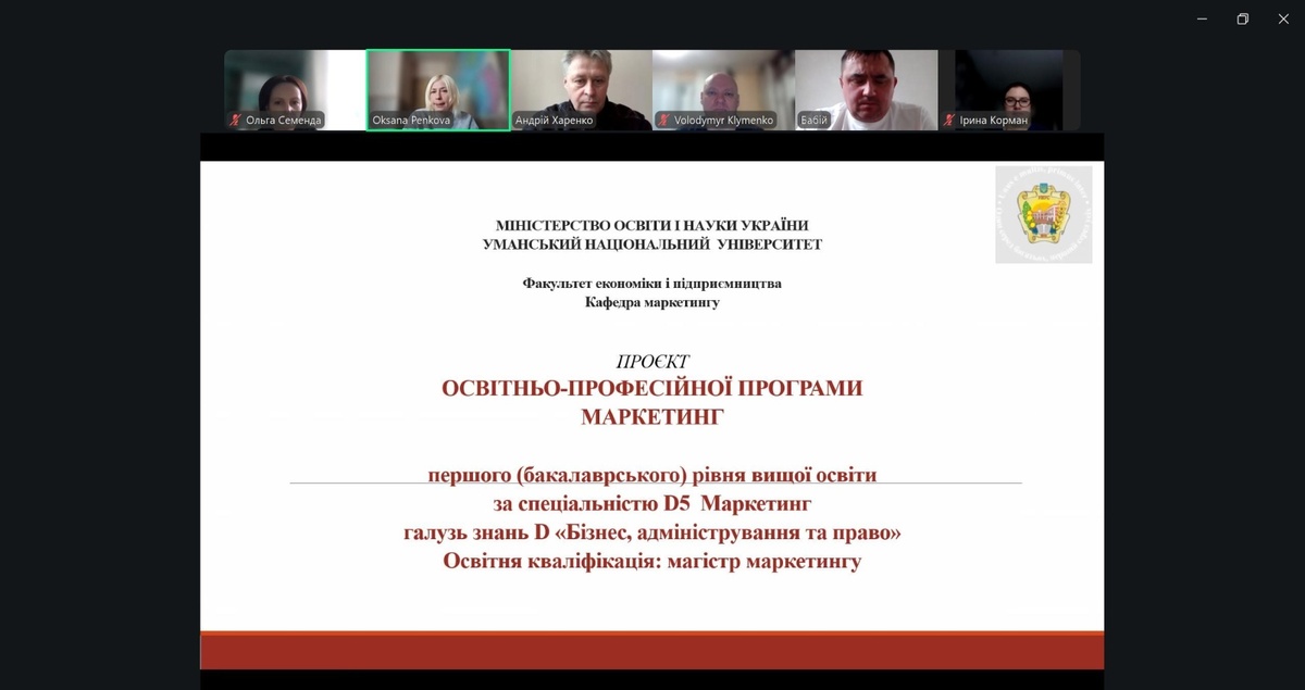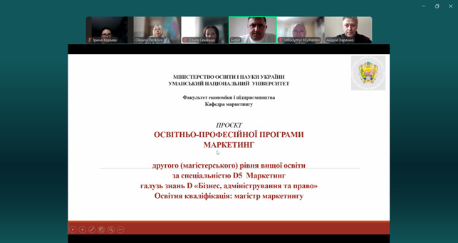 Обговорення проєктів ОП Маркетинг УНУ першого (бакалаврського) та другого (магістерського) рівнів вищої освіти у форматі відкритого діалогу
