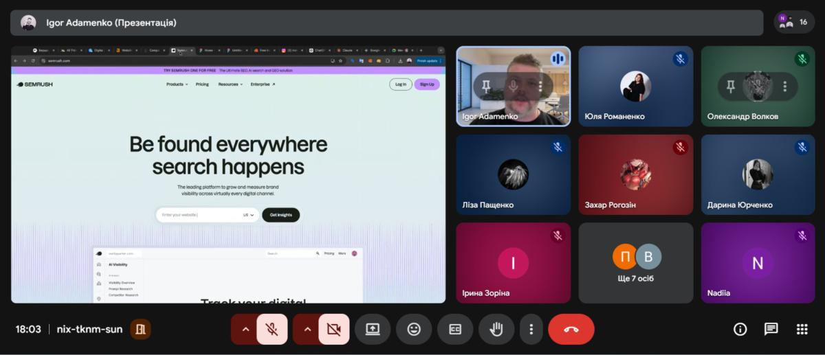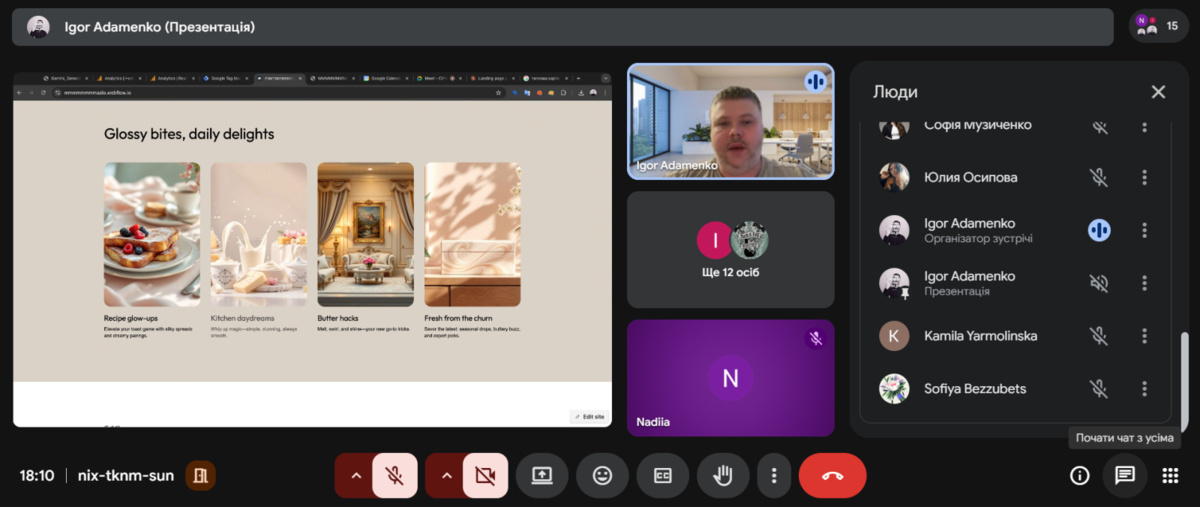 Під час занять здобувачі активно розв’язували практичні кейси, зокрема: вчилися створювати власні сайти як інструмент просування бізнесу; опановували сучасні підходи до генерації візуального контенту; знайомилися з можливостями використання штучного інтелекту в маркетинговій діяльності; досліджували програми та сервіси для аналізу потенційних споживачів та розробляли власні маркетингові стратегії для свого майбутнього бізнесу.
