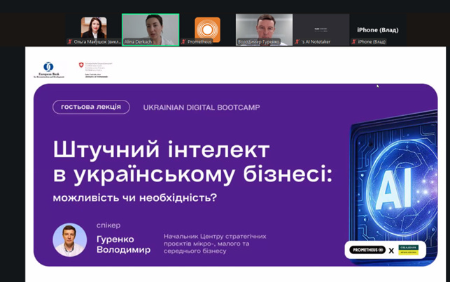 ШТУЧНИЙ ІНТЕЛЕКТ У БІЗНЕСІ: ВИКЛАДАЧІ УНУ ДОЛУЧИЛИСЯ ДО UKRAINIAN DIGITAL BOOTCAMP ВІД ЄБРР
