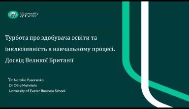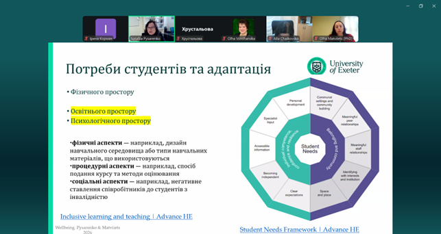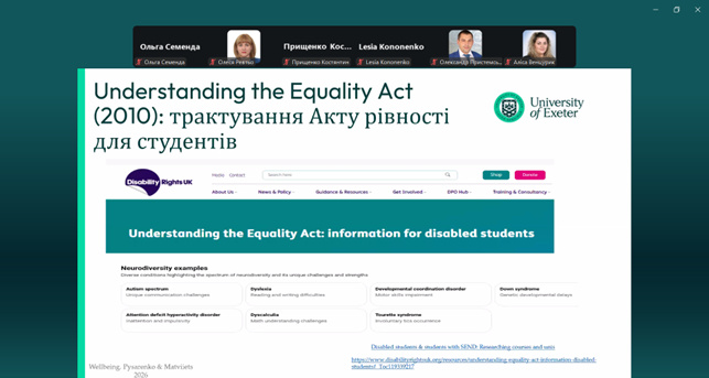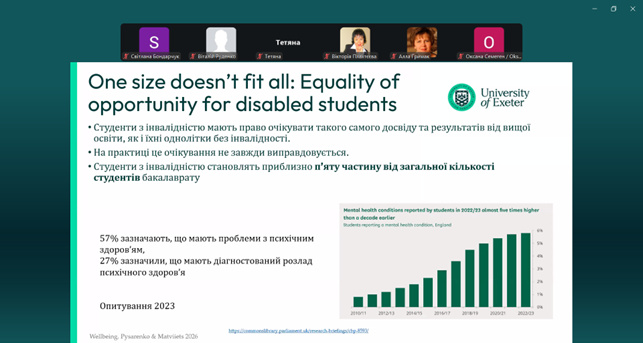 УЧАСТЬ У ВЕБІНАРІ «ТУРБОТА ПРО ЗДОБУВАЧА ОСВІТИ ТА ІНКЛЮЗИВНІСТЬ. ДОСВІД УНІВЕРСИТЕТІВ ВЕЛИКОЇ БРИТАНІЇ»