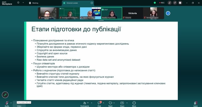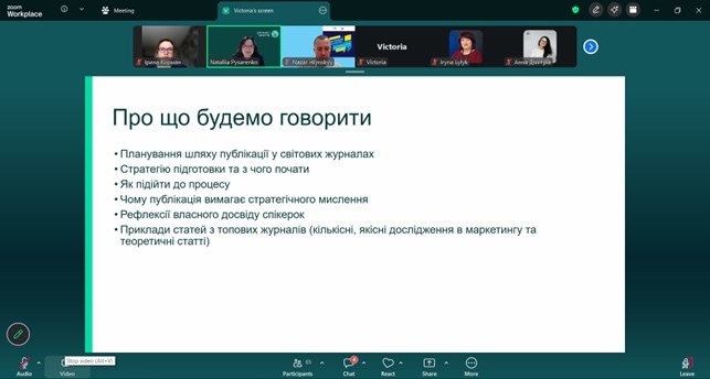 Тема зустрічі – «Публікація в топових світових журналах з маркетингу. Як спланувати шлях» – була присвячена актуальним питанням розвитку наукової діяльності, підготовки якісних досліджень та їх публікації у міжнародних наукових виданнях.